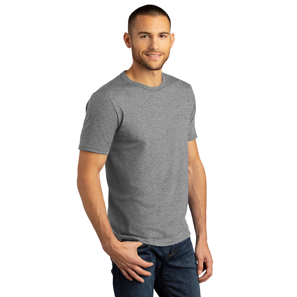 For a custom screen printed look try the District Men's Grey Frost Perfect Tri DTG Tee. Made of revolutionary printing technology fabric with a tri-blend material, this tee is exceptionally soft and comfortable for repeated wear. The lightweight material is ideal for creating employee apparel with a company logo whether worn every shift or just for special employee events. Also wonderful for a custom logo that shows affiliation with a team, cause, or event that brings people together for a unified reason. Create a special phrasing or icon to add to your logoed apparel line and watch as it gains popularity.Highlights