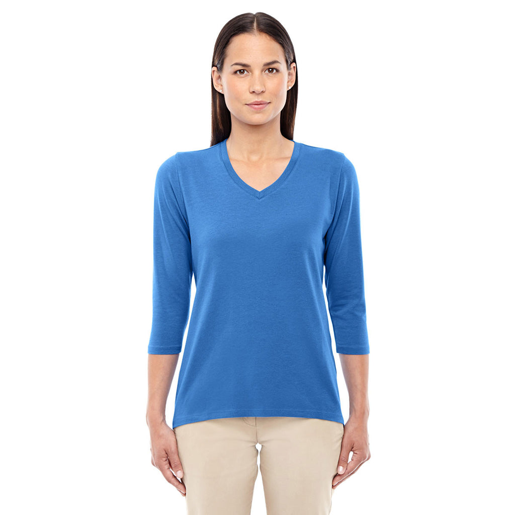 Devon & Jones Women's French Blue Perfect Fit Bracelet Length V-Neck Top