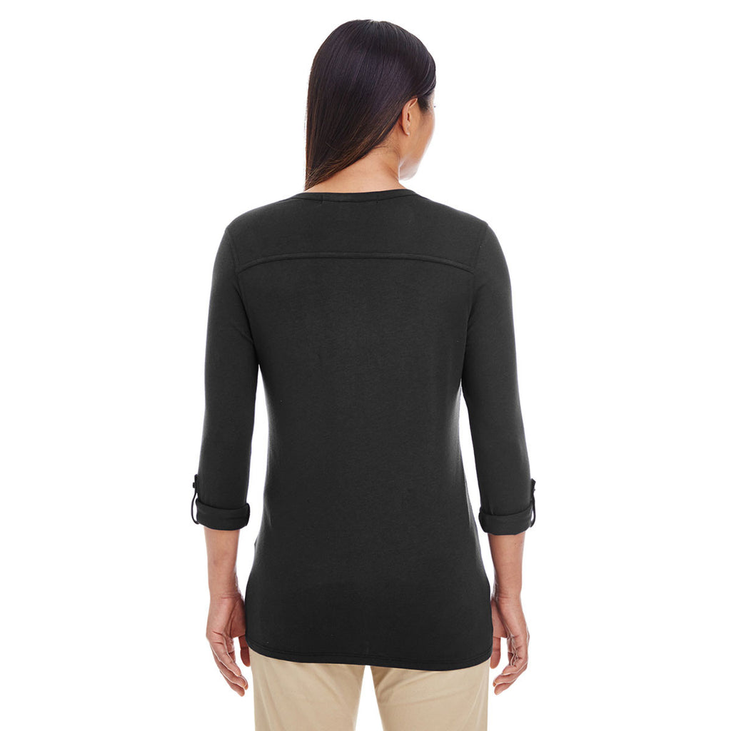 Devon & Jones Women's Black Perfect Fit Y-Placket Convertible Sleeve Knit Top