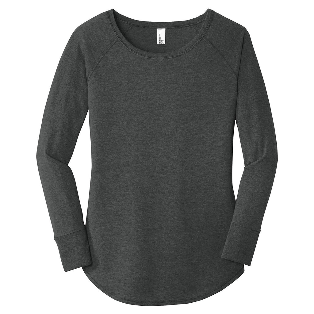 Turn heads at the next professional networking event by wearing the custom logoed District Women's Black Frost Perfect Tri Long Sleeve. With all eyes on you, display the corporate logo attached on the large imprint area. Stylish fashion combines with supreme comfort to place the long sleeve tunic on every professional female's must have corporate apparel list. The lightweight design includes polyester and rayon to ensure long lasting durability. Soft cotton blends with polyester and rayon to help the tunic achieve the ultimate in softness. The curved hem and rib knit cuffs present a refined look that lets everyone know you have things under control.Corresponding Men's Style: District Made Men's Black Frost Perfect Tri Long Sleeve Crew Tee