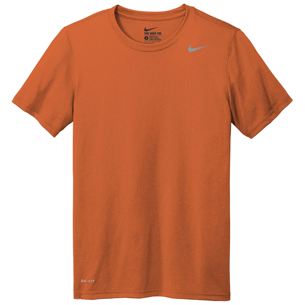 Nike Men's Desert Orange Team rLegend Tee with a custom logo creates the perfect tee for whatever your day holds. The peak performance tee has a low environmental impact and Dri-FIT technology to keep you comfortable thrughout the day. Lightweight enough to serve as workout wear, but stylish enough to wear on the golf course, tennis court, or basketball court. Order today.This product cannot ship outside of the United States.