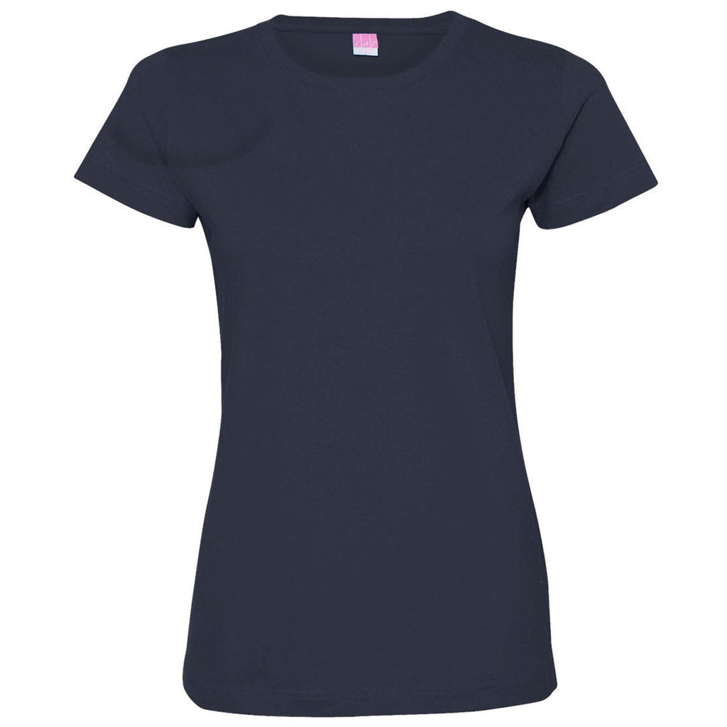 This LAT Women's Navy Fine Jersey Tee is the perfect canvas for your company's custom logo. The basic design of this t-shirt will make your custom logo stand out without distractions. Both comfortable and flattering, this shirt is a great choice for casual company uniforms or for company giveaways. It also works well at recruiting events and can be suitable for a company athletic event if desired. Combined with your brand's logo, this shirt is the perfect way to market your company outside of the office.Corresponding Men's Style: LAT Men's Navy Fine Jersey Tee