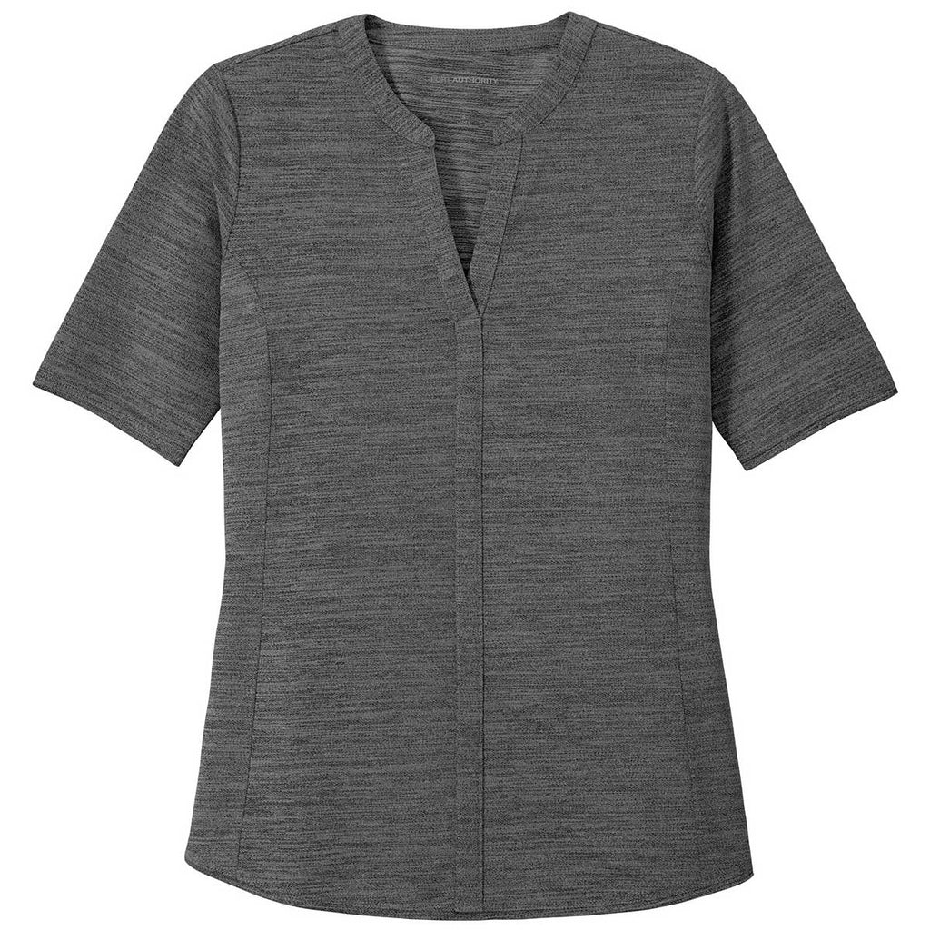 Port Authority Women's Black/Thunder Grey Stretch Heather Open Neck Top