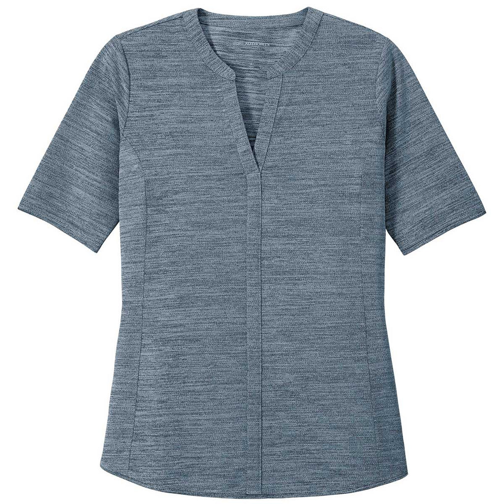 Port Authority Women's Regatta Blue/Gusty Grey Stretch Heather Open Neck Top