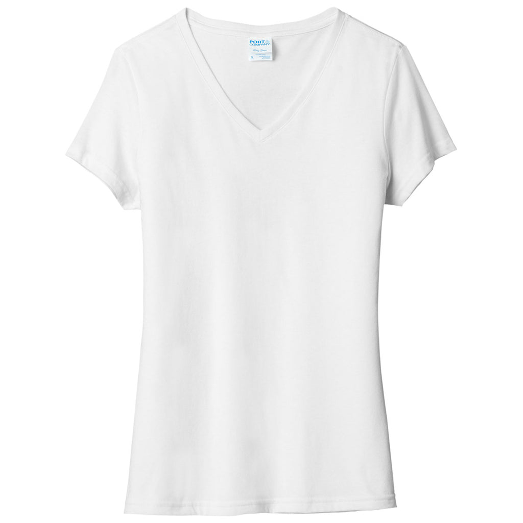 Port & Company Women's White Tri-Blend V-Neck Tee