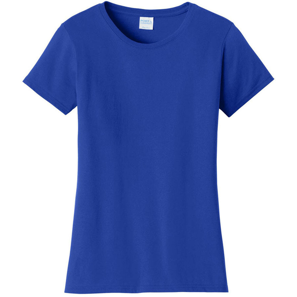 Do moisture laden t-shirts bog you down whenever you need to ramp up the competitive juices? Port & Company Women's True Royal Fan Favorite Tee contain moisture wicking technology that quickly evaporates perspiration the instant it forms on your skin. The result is a cooling of the skin that invigorates your body. Set-in sleeves allow for more arm movement, which comes in handy on the golf course and tennis court. The super soft fabric endures countless wash and dry cycles, without any of the colors fading. One-hundred percent rugged polyester interlock resists rips and tears. Attach your company logo to the t-shirts to spread the word about your brand.Highlights