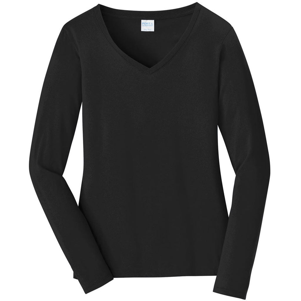 Port & Company Women's Jet Black Long Sleeve Fan Favorite V-Neck Tee