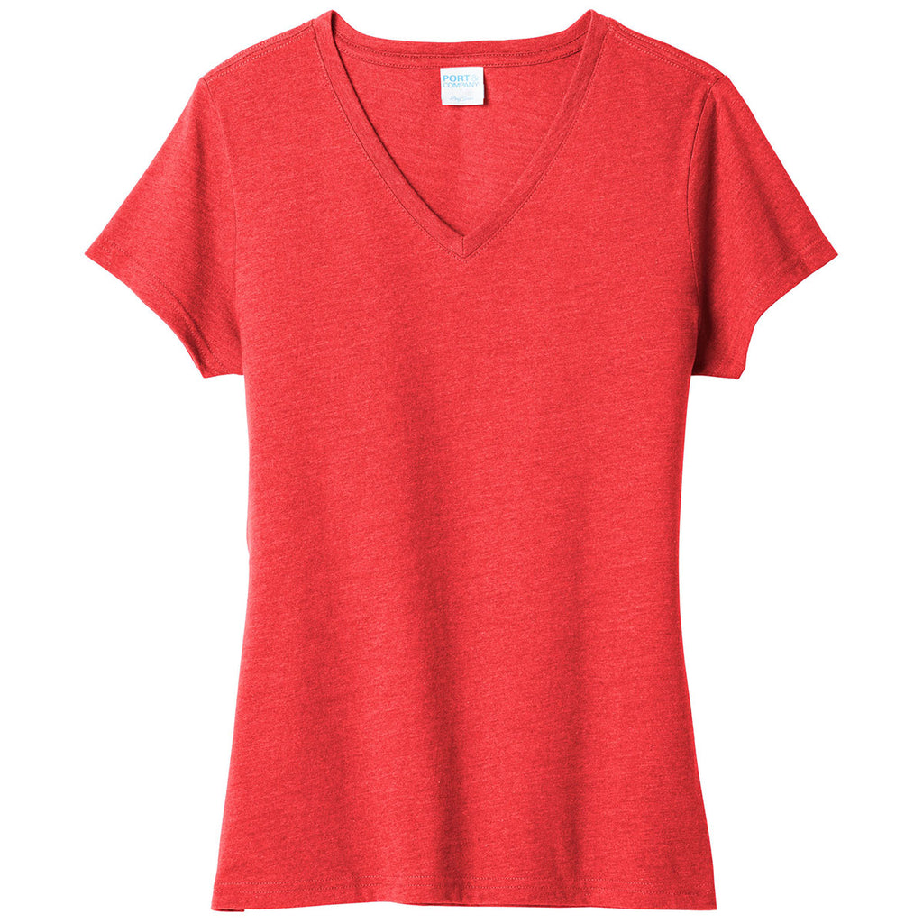 Port & Company Women's Bright Red Heather Fan Favorite Blend V-Neck Tee
