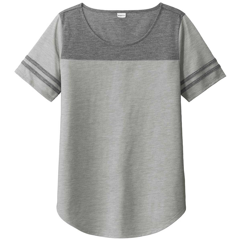 Be prepared on game day with a custom heat transfer Sport-Tek Women's Dark Grey Heather/Light Grey Heather PosiCharge Tri-Blend Wicking Fan Tee. This ultra comfortable tee can have the heat transfer design of your choosing carefully placed to make sure you stand out on game day. Perfect for team events with a corporate logo of sponsors or just to wear to support a specific player. Available in a wide range of colors and sizes, this poly, cotton, rayon jersey blend is moisture wicking for the days when the weather is toasty. Contrasting front and back yoke and stripes on the sleeves make this tee a sports fan's dream. Add a company logo to give as employee gifts that will be enjoyed on game days.Highlights