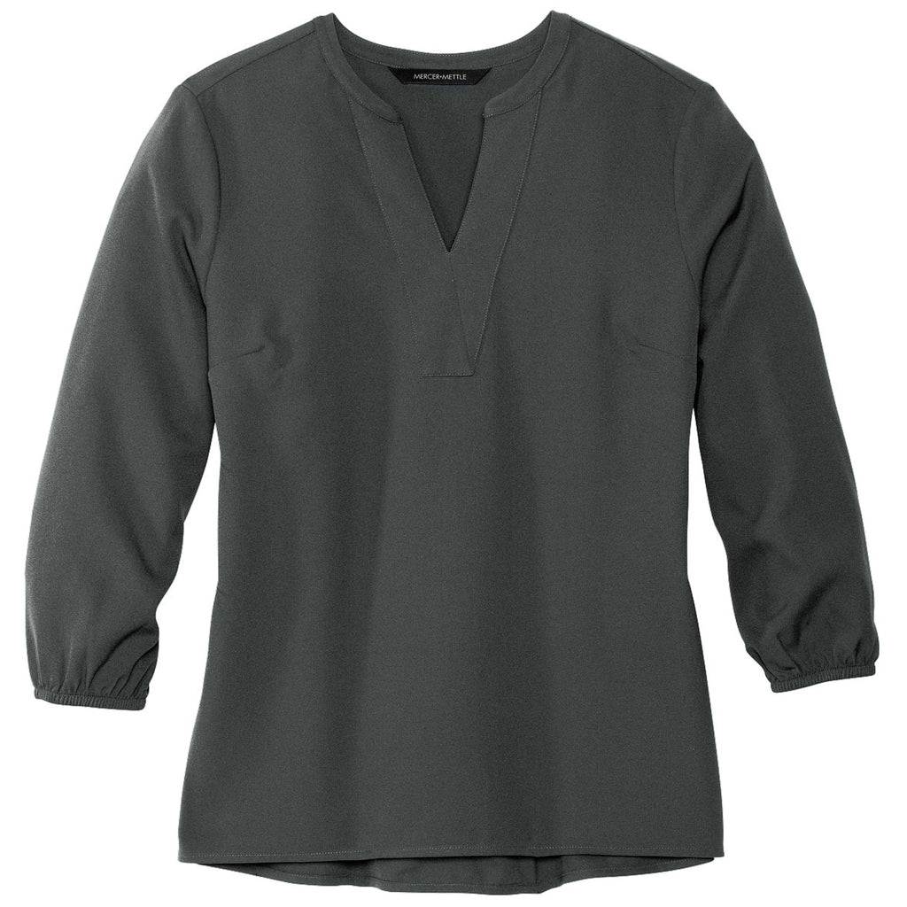 Mercer+Mettle Women's Anchor Grey Stretch Crepe 3/4 Sleeve Blouse with custom logo is a stylish desk to dinner option that can be appreciated by all. The crepe fabric provides a relaxed fit with elastic cuffs on the sleeves and a slight drop tail hem for a more elegant and covered look. Ideal for corporate and office apparel, so order today.Highlights