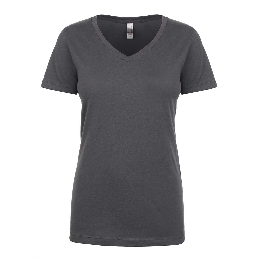 Remember how you bought that one tee shirt that completely overhauled your wardrobe and made you feel like you always had something to wear? No? Then it's time to get a tee that can actually do that for you. This Next Level Women's Dark Grey Ideal V-Neck Tee is called ideal because that's what it will do in your wardrobe: it will be the ideal layering piece, the ideal accompaniment to a casual day around the home, and the ideal shirt you can put in the washer and dryer and wear again fresh. Simply add your custom logo to make it the ideal way to represent your brand, too.Setup includes free 2-color logo on 1 location. If you need more colors added to your logo, or another imprint location, please inquire with a Merchologist.