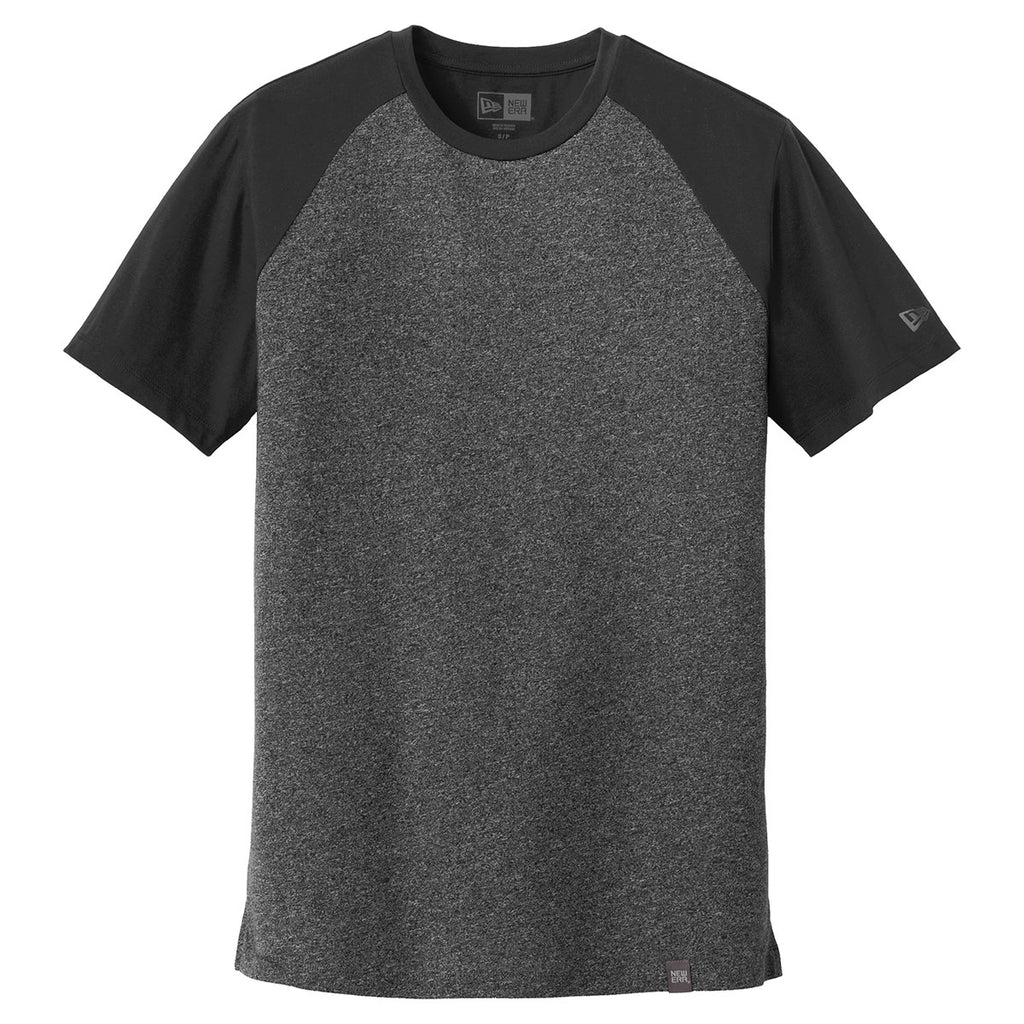 Infused with incredible softness, the New Era Men's BlackBlackTwistist Heritage Blend Varsity Tee represents the ideal corporate apparel for company-sponsored athletic events. Boost your employees to first team fashion varsity status by adding your corporate logo on the large imprint area. With a custom logo, you get the word out about your products and services at industry trade shows. The solid color back allows you to pair the tee with a wide variety of pant styles. Faux raglan sleeves enhance the aesthetic appeal of ate that works equally well as a stand-alone garment as it does creating warmth as the first layer for a winter fashion ensemble.