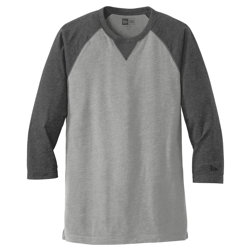 New Era Men's Black Heather/Shadow Grey Heather Sueded Cotton 3/4-Sleeve Baseball Raglan Tee