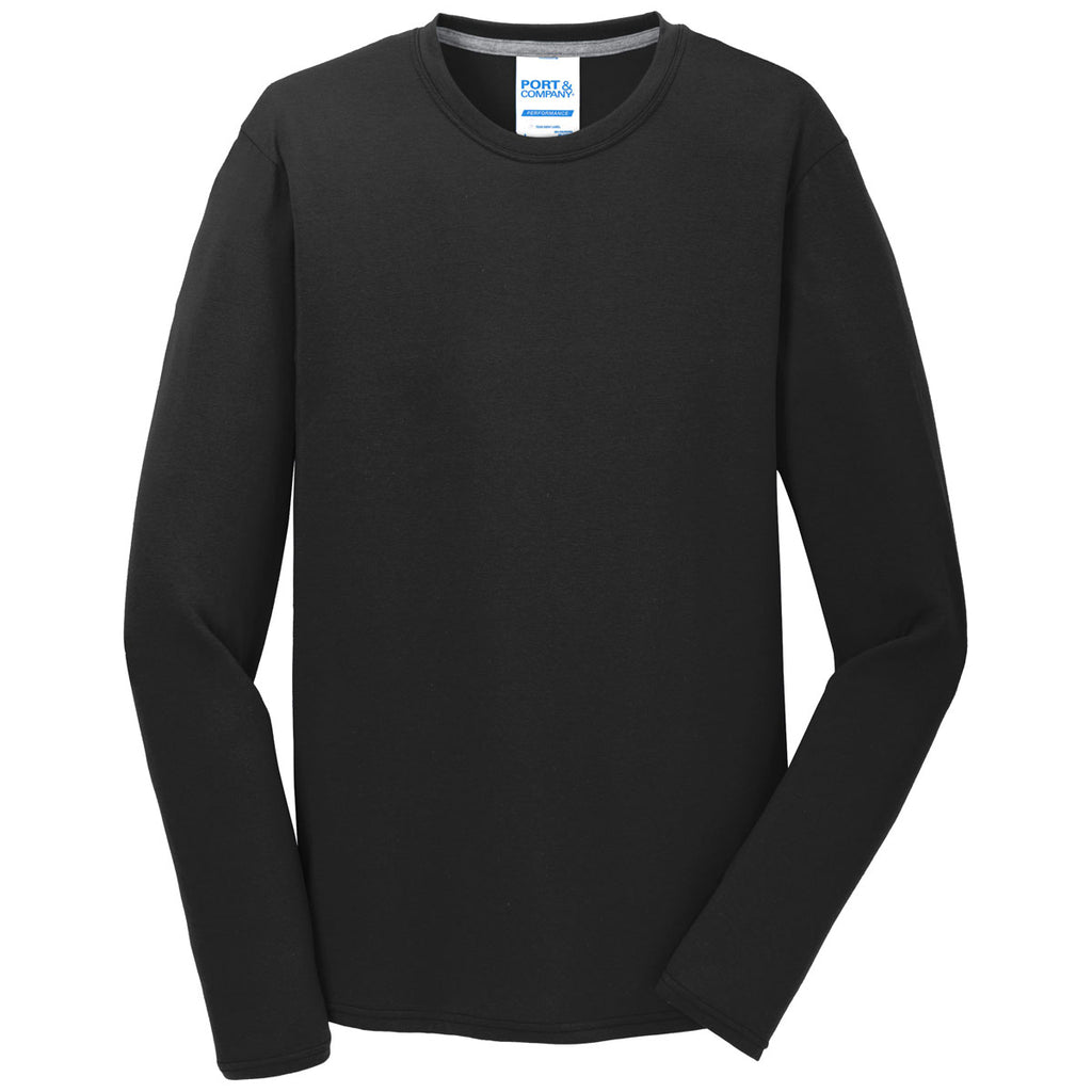Port & Company Men's Jet Black Long Sleeve Performance Blend Tee