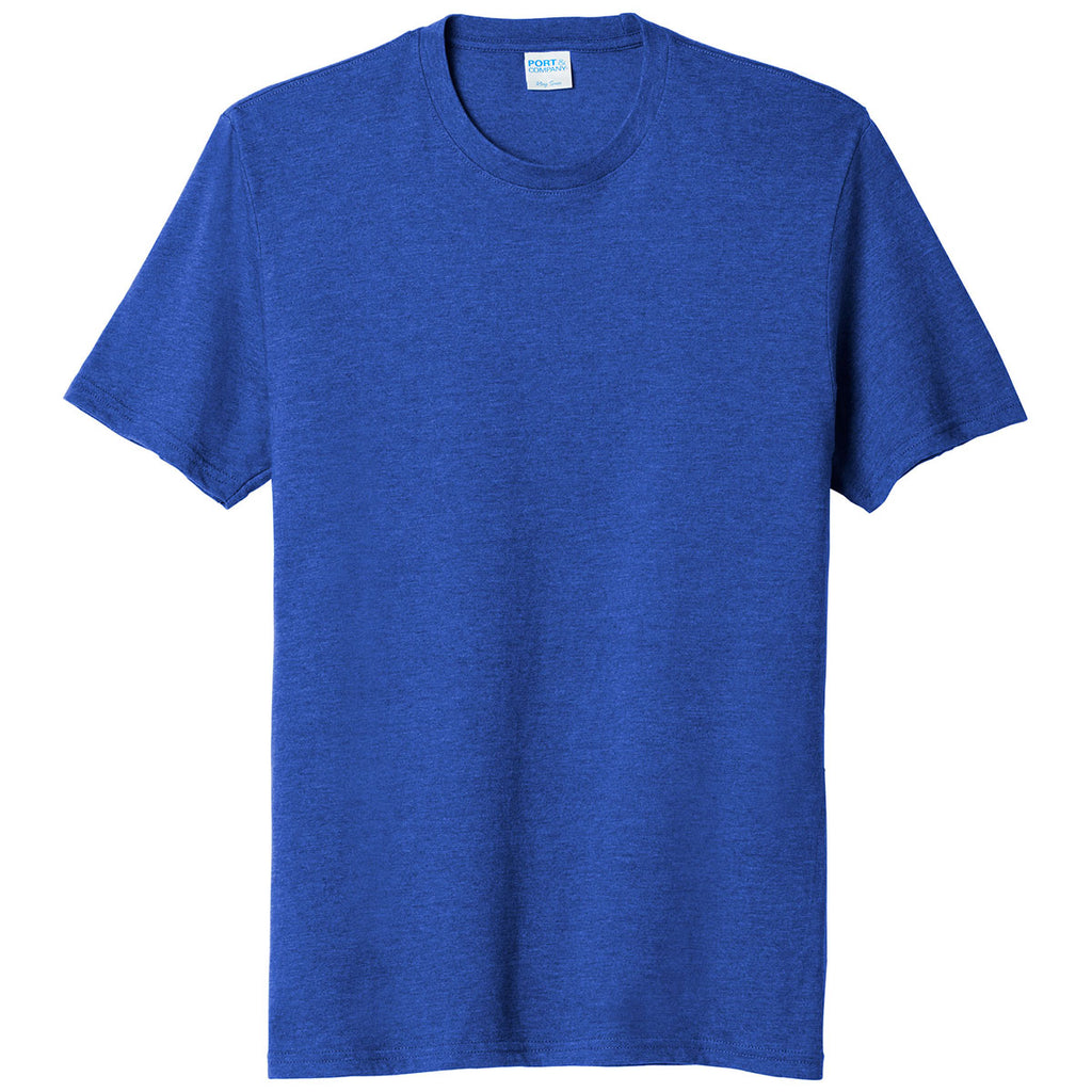 Proudly display the unity of your corporate team by ordering the screen printed Port & Company Men's True Royal Heather Fan Favorite Blend Tee. The ultra soft fabric contains 60% ring spun cotton and 40% polyester to deliver supreme comfort and long lasting durability. Shoulder to shoulder taping presents a refined appearance that sets your team apart from other professionals attending an industry trade show. Wear the tee as an only layer when the heat ramps up and make it the first layer of an autumn cool weather fashion ensemble. Add a custom logo on the front of the tee to promote your company at civic events.Corresponding Women's Style: Port & Company Women's True Royal Heather Fan Favorite Blend V-Neck Tee