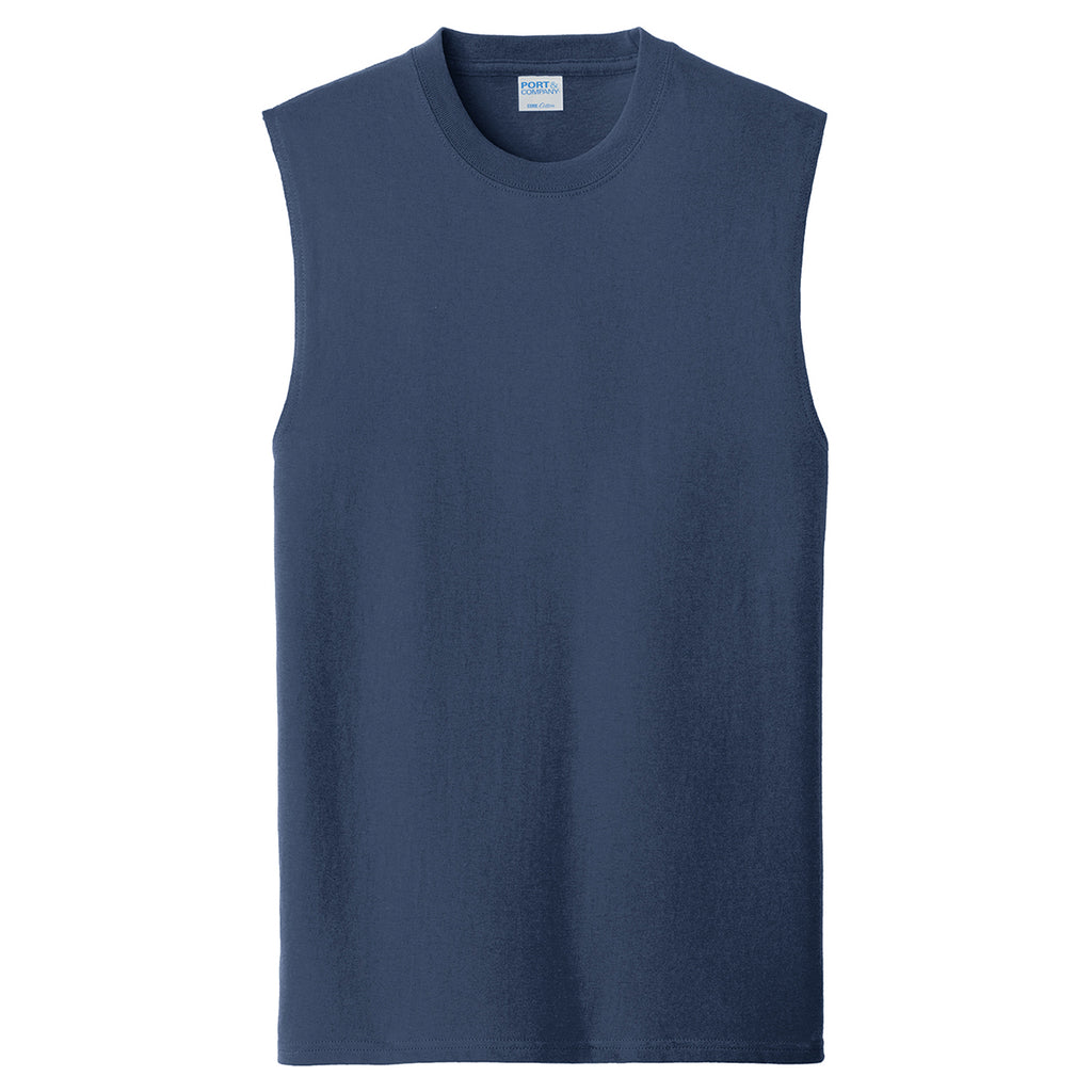 The annual corporate race is just around the corner, which means the time has come to order the custom logoed Port & Company Men's Navy Core Cotton Sleeveless Tee. Designed with 100% smooth cotton, the versatile tee works as well as an only layer as it works as the first layer for a cold weather day. Give away the decorated tee to thank your team members for delivering a project ahead of schedule. Add a custom logo on the large imprint area to reach more customer prospects at outdoor corporate-sponsored sporting events. With a company logo, you create a powerful platform for promoting your products and services.Highlights