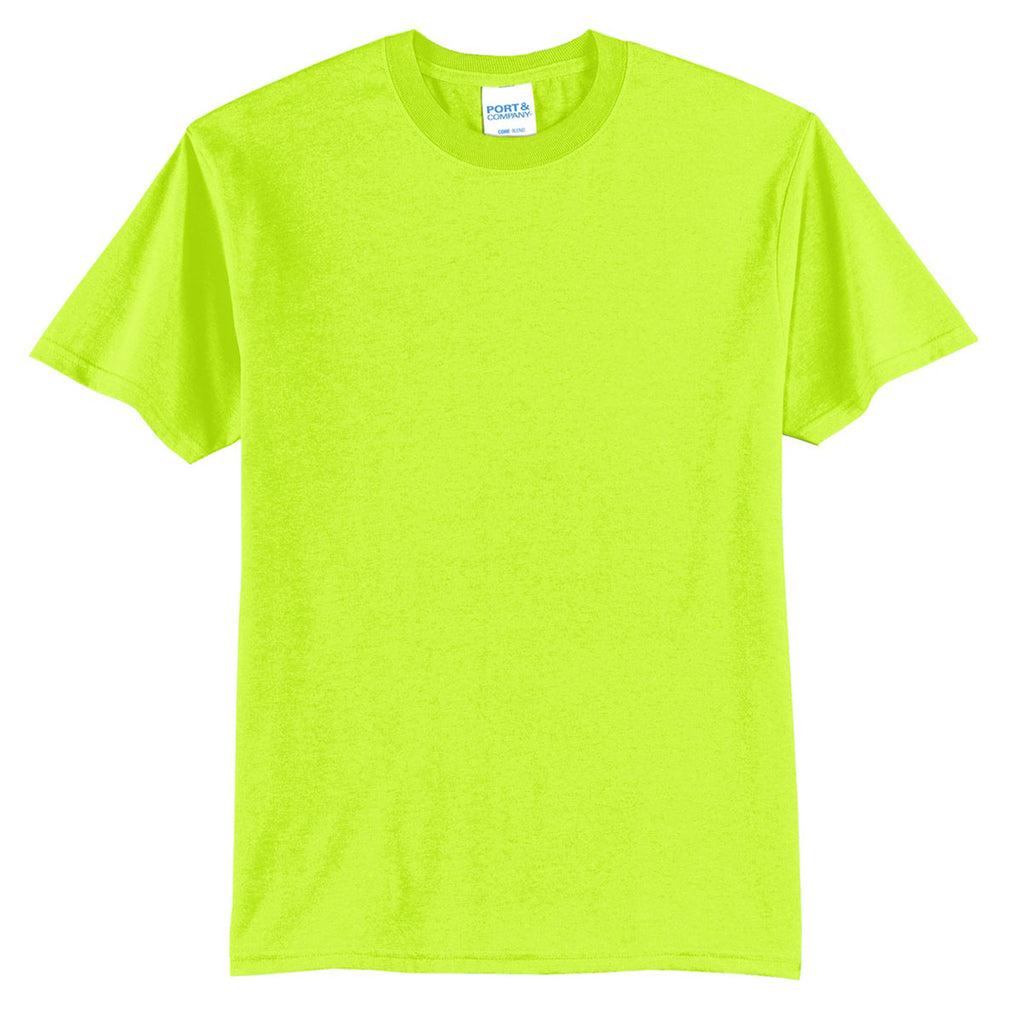 Order the printed Port & Company Men's Safety Green Core Blend Tee for each member of your company team that attends your next outdoor event. Wear the tee as an only layer when you socialize with friends on the backyard deck and as the first layer of apparel for when you attend business seminars. Make sure to add a custom logo on the large imprint area to let professional peers know about your products and services. This custom t-shirt is a perfect choice for your next custom apparel purchase. The classic style and affordable price point makes it great for any budget.Highlights