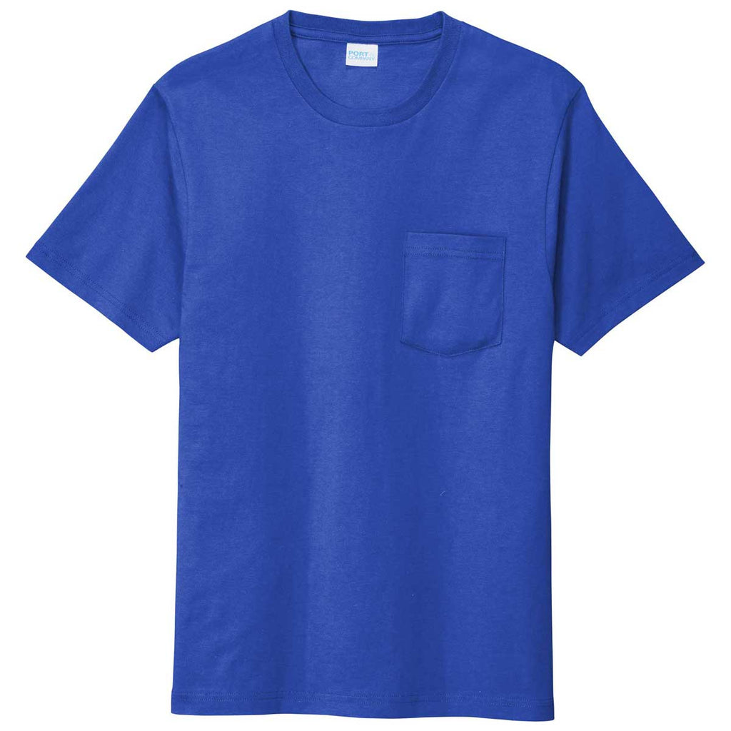 Create screen print for the Port & Company True Royal Bouncer Pocket Tee for a look that can serve as anything from employee apparel to active wear with a custom logo. Add a company logo to create a laid back, yet clean cut look for workers with the roomier fit combed ring spun cotton tee with a chest pocket. An inch of added length offers extra coverage when moving around whether stacking boxes or going for a run. The heavier fabric is durable and easy to care for if daily wear is needed. Place an order today to have these for your logoed apparel line.Highlights