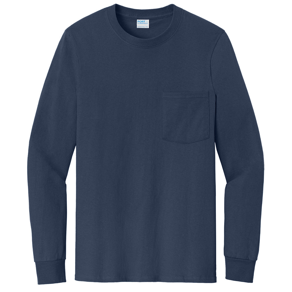 Port & Company Men's Navy Tall Long Sleeve Essential Pocket Tee