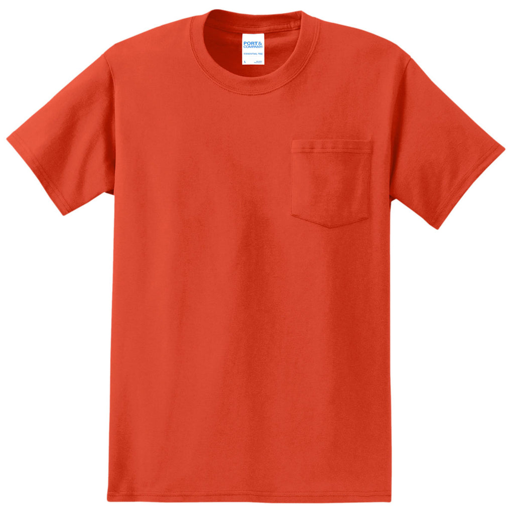 The Port & Company Men's Orange Essential Pocket Tee is a classic t-shirt that will make sure your brand's custom logo or design always gets the attention it deserves. On the chest, a pocket adds extra visual impact to this wearable piece, which is made from a comfortable, breathable fabric.Highlights