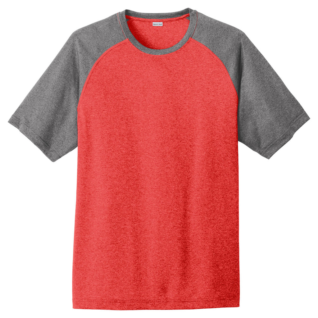 The next time you want to show appreciation for your loyal customers, hand out the custom logoed Sport-Tek Men's Scarlet Heather-On-Heather Contender Tee. By giving away the tee, you show your continued appreciation to both customers and employees. Add your company logo on the large imprint area to capture more interest in your brand at industry trade shows. The color block design and 100% polyester jersey makes the tee perfect for wearing at company recreational events. Moisture wicking technology keeps you feeling comfortable all day long. Contrast raglan sleeves seal the fashion deal.Highlights
