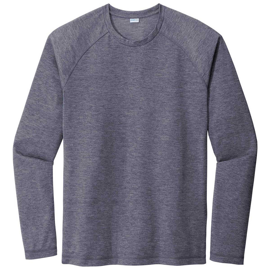 Sport-Tek Men's True Navy Heather PosiCharge Long Sleeve Tri-Blend Wicking Raglan Tee