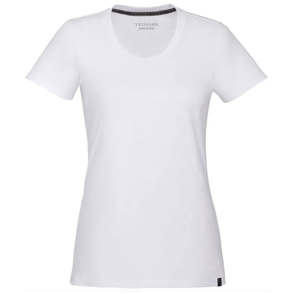 Enjoy a custom look with the Elevate Women's White Somoto Eco Short Sleeve Tee. The versatile tee is comfort, easy to wear, and eco-friendly with recycled materials. Great to wear alone in warmer weather or layer with a hoody or jacket, the short sleeve tee can sport your embroidery with ease and style. Place an order today.Highlights