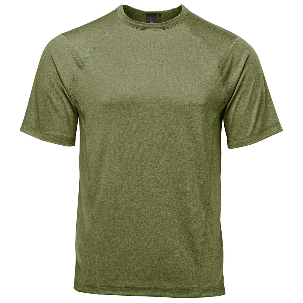 Design a corporate logo for the Stormtech Men's Sage Green Heather Volante H2X-DRY Short Sleeve Tee to create environmentally sustainable uniforms that can be worn daily. The ultra-soft material will keep you dry and comfortable whether working the sales floor, serving others, or just chilling at home. Place an order today before they sell out.Highlights
