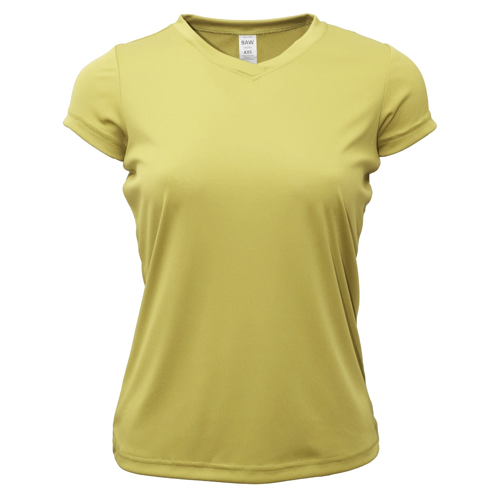 No one could accuse you of not selecting the right color of women's T-shirt for your company sponsored promotion! The BAW Women's Vegas Gold Xtreme Tek T-Shirt comes in a variety different shades. Just imagine your custom logo on the front of each one. Your promotion could be the gold at the end of the proverbial rainbow. This ladies' tee is available in sizes 2XS to 3X, and the material is so comfortable and breathable that recipients will wear it every chance they get. This is a tee that will not shrink and also offers UV protection. Whether you're having an anniversary celebration or gift with purchase, you just can't go wrong!Corresponding Men's Style: BAW Men's Vegas Gold Xtreme Tek T-Shirt