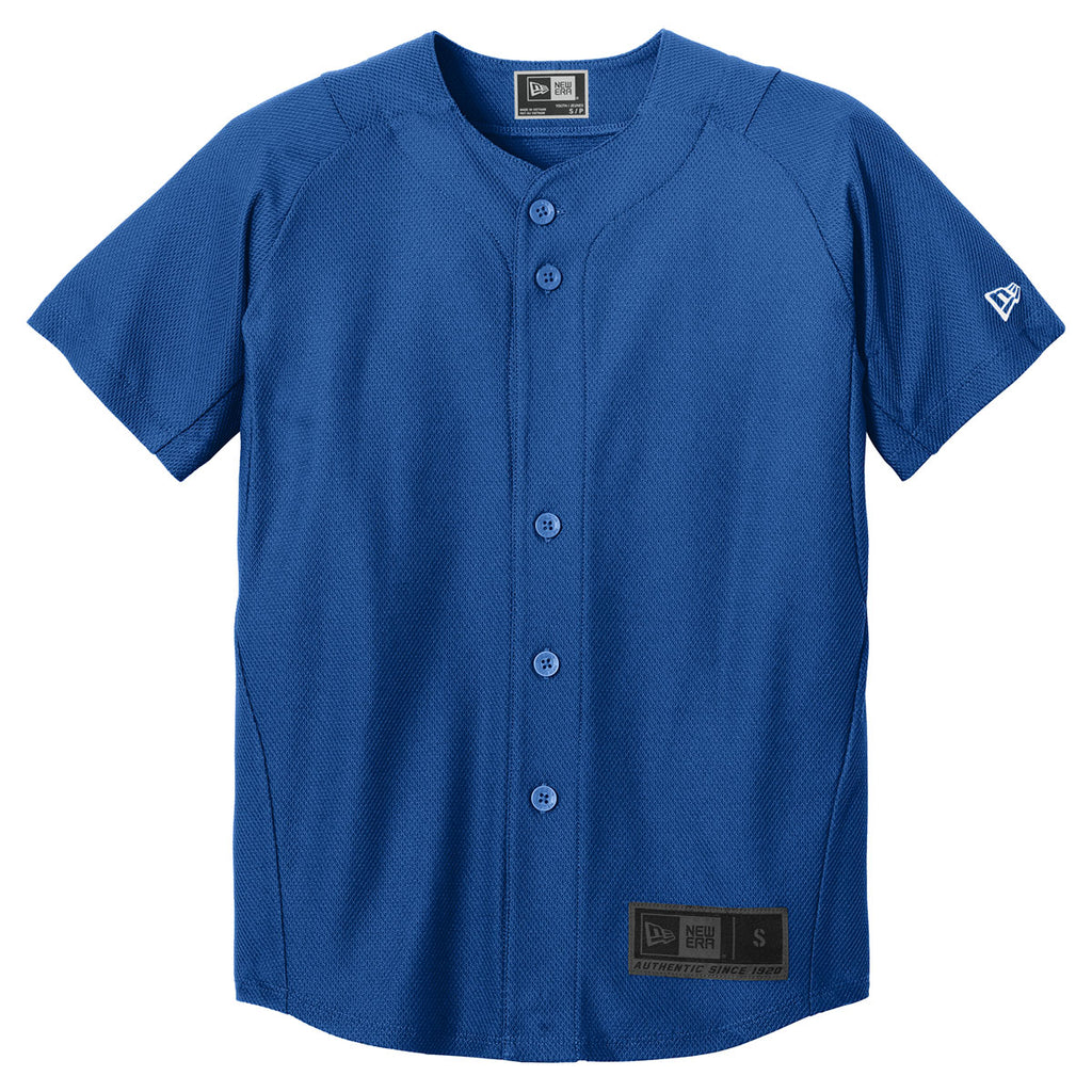 To improve athletic performance, New Era designed the embroidered New Era Youth Royal Diamond Era Full-Button Jersey to include raglan sleeves. Your child will enjoy more arm mobility, which helps to take better swings at the weekly baseball game. One-hundred percent polyester diamond fabric withstands the wear and tear of playing competitive sports. And not to mention daily wear and tear of a busy kid. The snag resistant fabric resists rips and tears to offer high performance custom apparel for years to come. Moisture wicking performance delivers supreme comfort. Attach your team logo to unify your child's baseball or softball league.