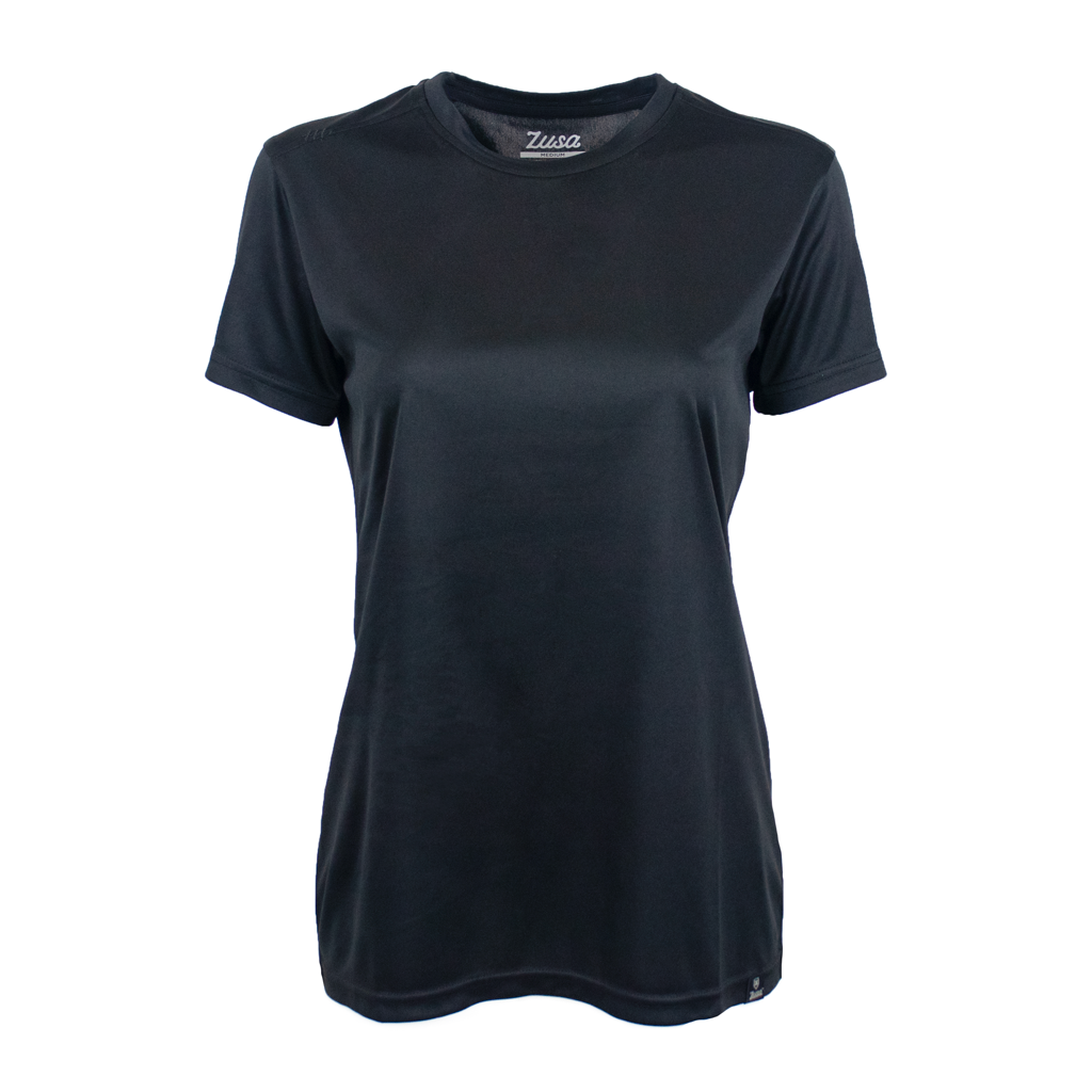 The Zusa Breezy Tee 2.0 for women is a performance t-shirt that not only looks great but also helps the environment. Made with 100% recycled materials, including 4 recycled water bottles, this tee is perfect for eco-friendly companies and progressive teams. The moisture-wicking fabric of the Zusa Breezy 2.0 tee will keep you cool and dry, while the UV protection (UPF 35) will shield you from the sun's harmful rays. With an easy-care design, this tee is perfect for those on the go. The lightweight and breathable material makes it ideal for all your outdoor activities.