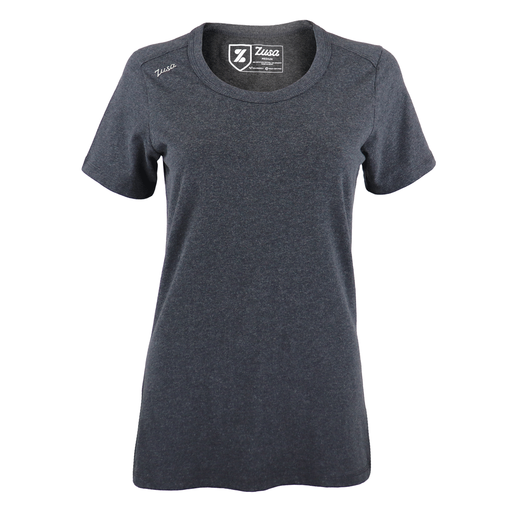 What makes the perfect custom t-shirt for women? Ideally, the perfect customized tees should be super comfy, sustainable, feature the perfect spot for your screen-printed company logo and be available with express delivery. Well, the Zusa Women's Black Heather Peachy Tee checks all of those boxes and more. It's made from comfortable Egyptian cotton with a brushed finish that makes the shirt feel amazingly soft. You may be ordering these t-shirts as promotional shirts or corporate apparel, but you're not going to want to change out of them when you get home after work!