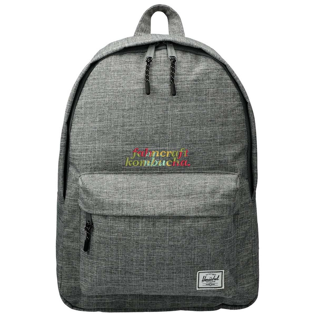 The custom Herschel Raven Crosshatch Classic Backpack retains the timeless design of your classroom staple - showcasing a neat, sized-down silhouette that suits your style. This bag is made with adjustable, padded shoulder straps and a lightly padded backpanel for added carrying comfort and features a front pocket for an expanded storage. Use the front imprint area to display your company logo or name - your brand's presence makes the piece perfect as an event giveaway or employee gift.