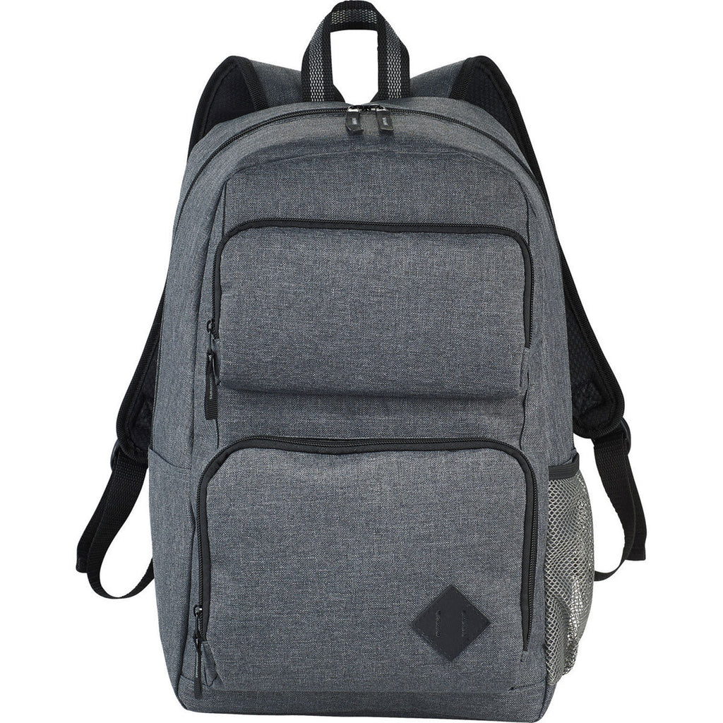 The 48-Hour Leed's Charcoal Graphite Deluxe 15" Computer Backpack is a bag designed with the commuter in mind. It has numerous features users will appreciate when traveling to and from the office including a padded laptop sleeve, tablet pocket, several zippered pockets, and a side water bottle pocket. You'll love how your company logo stands out against the solid colour material, giving your brand maximum visibility.Please note that there may be a delay in processing your 48-Hour order if artwork revisions are required. Orders requiring revisions or additional details will no longer qualify for 48-Hour production. The 48-Hour lead time is for production only, not delivery. You will select your shipping speed at checkout. 48-Hour orders are not eligible for cancellation. All sales are final. Learn more on our FAQ Page.