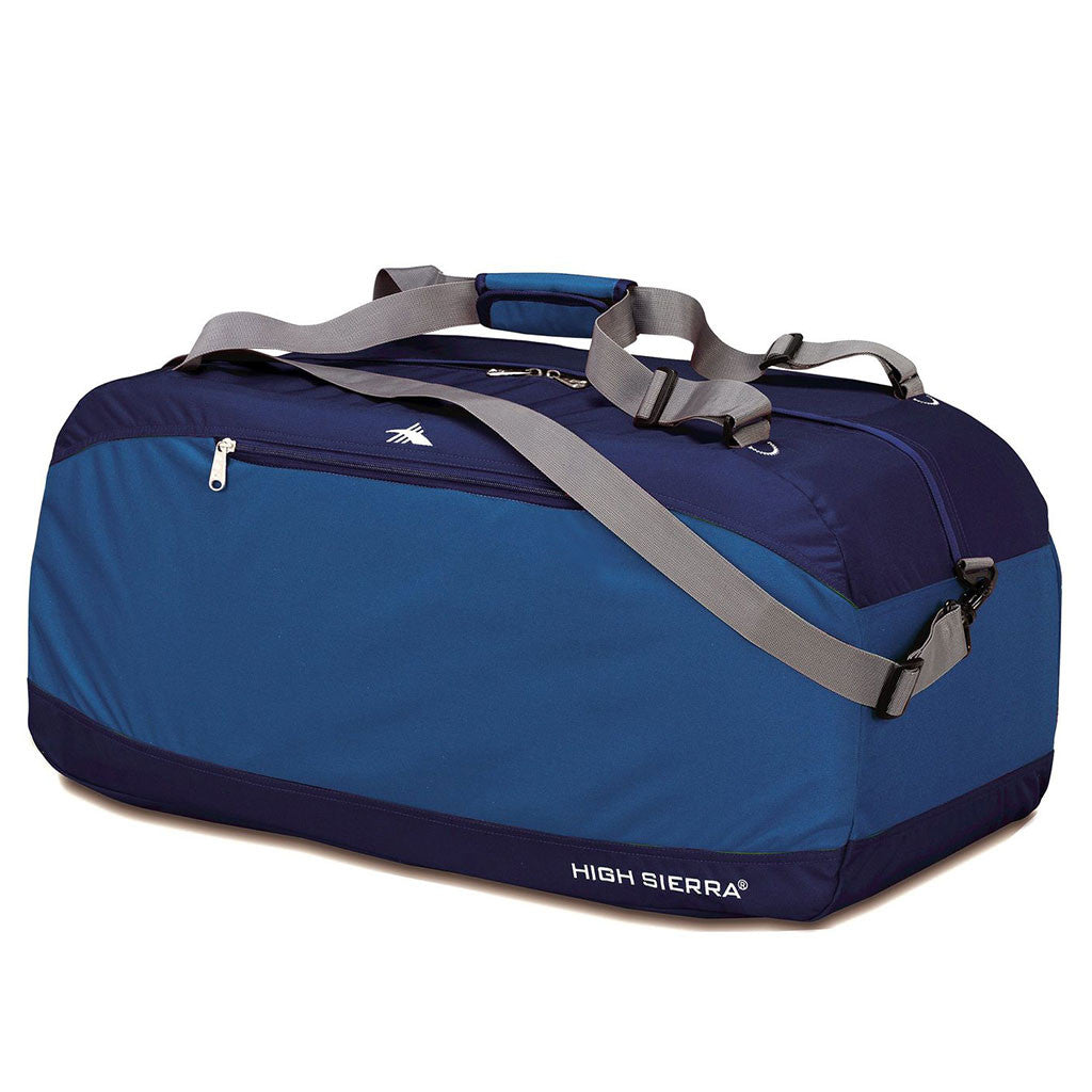 Do you get frustrated digging into your luggage to retrieve your toiletry bag? The High Sierra Blue Velvet/Pacific Pack-N-Go 30" Duffel includes a webbing loop that you use to attach your toiletry pouch for quick access. The comfortable padded handle converts into backpack straps that you wear for navigating crowded spaces, such as subway stations and airport terminals. Store your laptop inside of the primary compartment and never have to worry about the device incurring damage caused by strong impacts. The 30-inch duffle includes plenty of room to add your company logo.Highlights