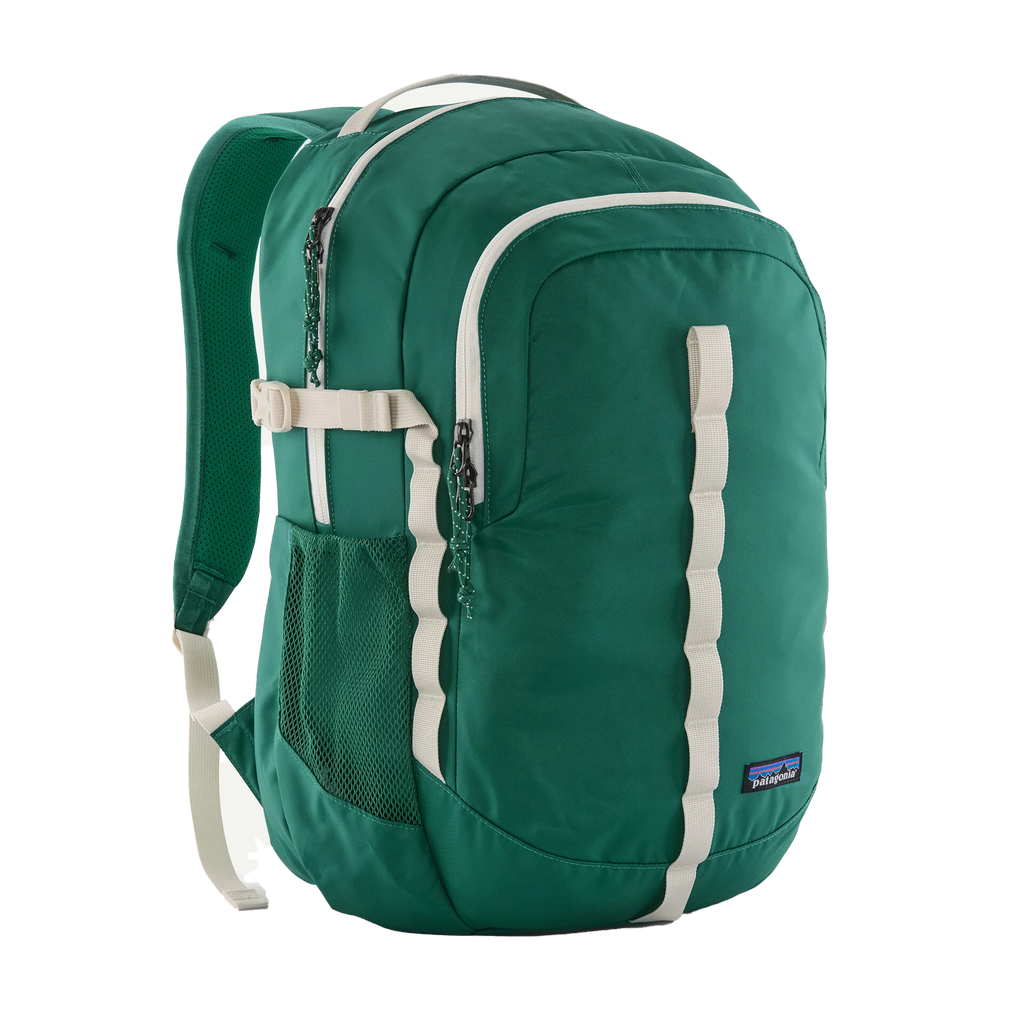 The Patagonia Gem Green Refugio Day Pack 26L is our classic daypack series that excels for the everyday and stands up to years of travel to come. The Refugio Daypack 26L is just the right size for a full day, with all the essential features, like 100% recycled materials with a durable water repellent (DWR) finish made without intentionally added PFAS, a laptop sleeve, spacious main compartment with internal organization, hydration access and water bottle pockets.