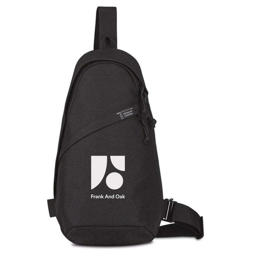A branded Gemline Black Renew rPET Sling Bag is made of sustainable materials in a modern form to make your day easier no matter what may be on your schedule. The sling back style has a front zippered pocket for accessories and a dual zippered opening to a large main compartment. Adjustable to either shoulder for customized wearing, the kid-friendly sling bag is great for people of almost any age. Add a company logo to share as a new employee welcome gift or display at trade shows and watch as people reach for it again and again. Perfect for commuting, day trips, or daily use to stay organized. Place an order today.The minimum order for this product is 48 pieces.