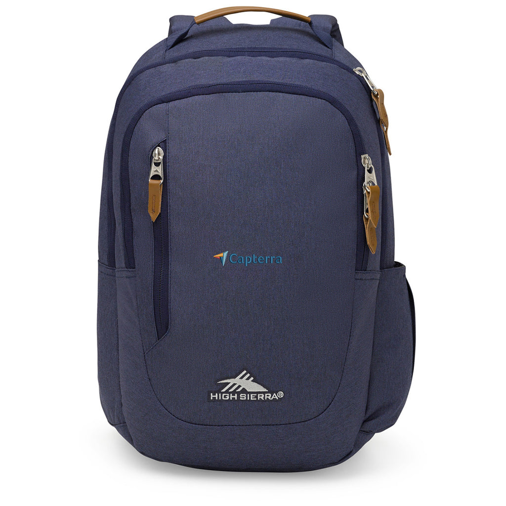 Try a corporate logo for the High Sierra Navy Heather Haidan Laptop Backpack to give as welcome gifts, incentives, or promotional items for the office. The large capacity main compartment is great for a smaller laptop, tablet, or files and the outside zippered pockets can keep smaller tech or items organized.