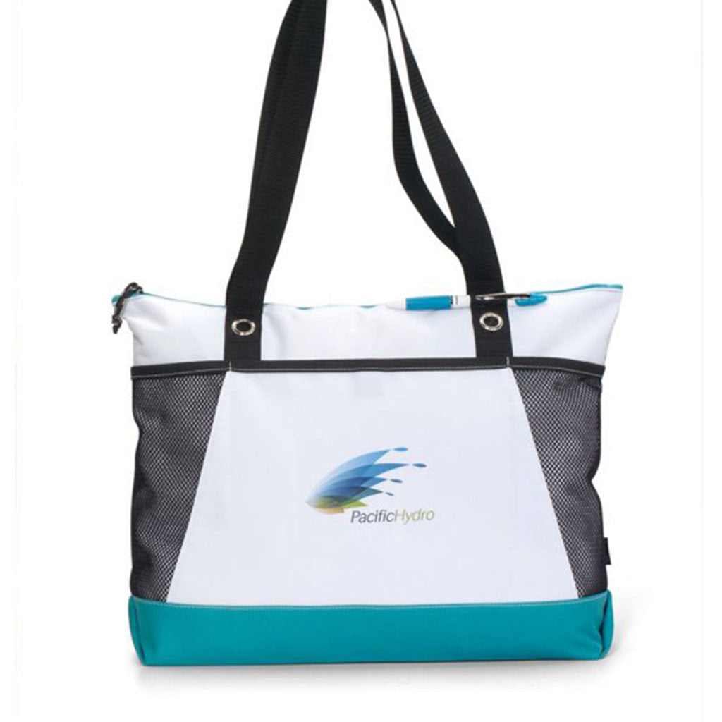 When you're at a convention, you're in "promotion mode." And that's a good thing, because here at Merchology, you can add your custom logo to convention totes like the Gemline Turquoise Venture Business Tote. That means maximum branding with maximum quality-and a sure way to attract people to your corporate swag. This particular tote has enough durability and strength to see use for years on end, which means you won't may not even see the long-lasting branding impact it has. The minimum order for this product is 100 pieces when decorated.Highlights