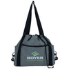 Enjoy the creative style of the custom Good Value Charcoal Convertible Cinch Tote-Pack with a logo in your unique design. This oversized cinch tote-pack is uniquely designed with long carry straps and a cinch close top that can be used open or closed as needed. Pack the large main compartment with files, books, notebooks, and more for your morning commute and then cinch it up to come home. A small front zippered pocket is great for keys, and side water bottle pockets keep you organized. Add a company logo to use at a trade show or recruiting event or fill it with goodies to create an impressive new employee welcome package. Place your order today.
