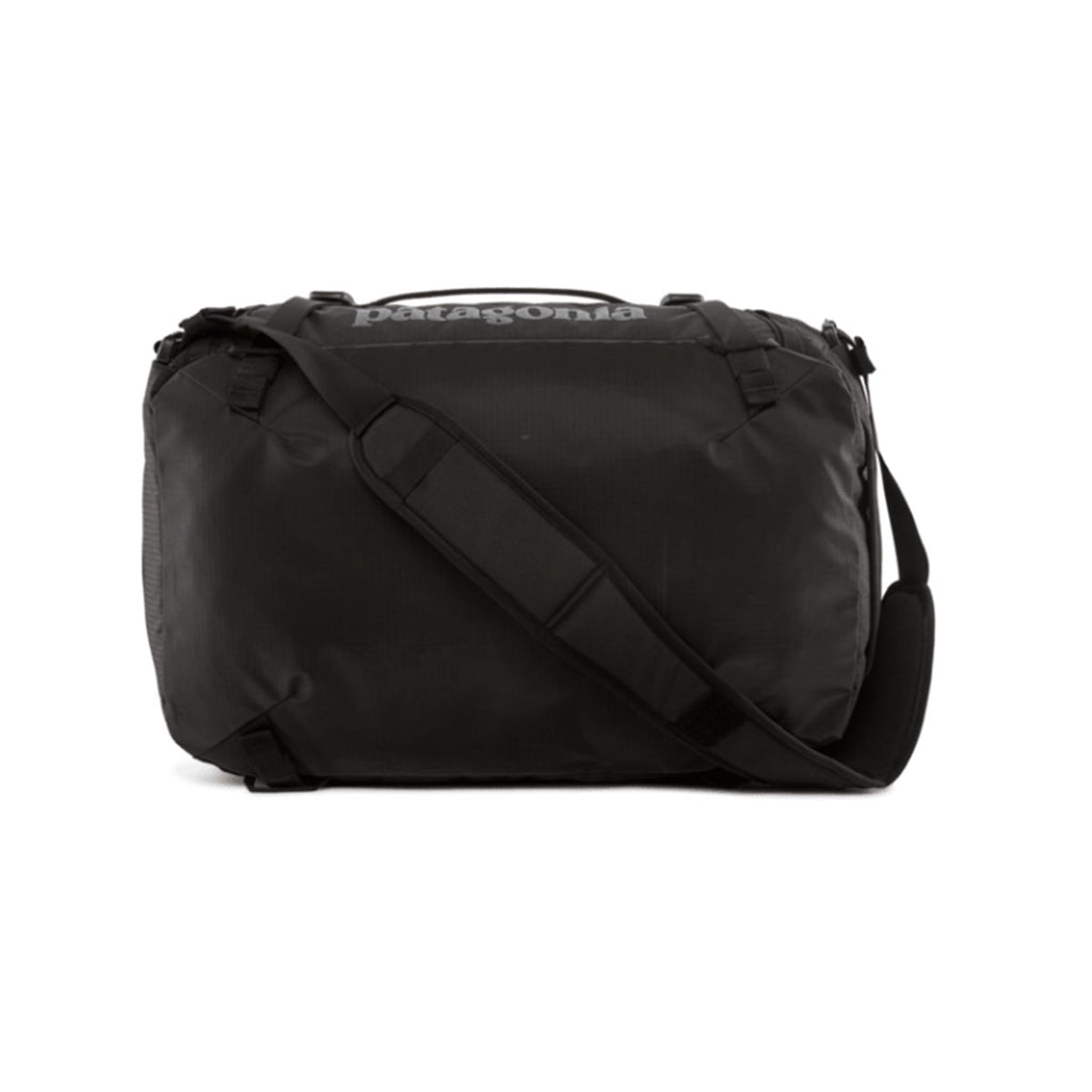 The classic Patagonia Black Hole MLC bag is a burly, soft-sided 45-liter suitcase with enough room for world travel and convertible backpack straps for comfy load carrying, and is made with 100% recycled body fabric, lining and webbing and coated with a 100% recycled TPU laminate.