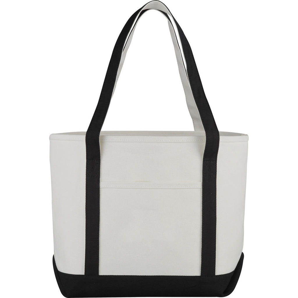 Your custom logo will pop when added to the eye-catching Leed's Black Cotton Canvas Premium Boat Tote 18 oz. The classic two-tone design of this boat tote is sure to catch people's attention when carried at trade shows, while traveling, or to and from everyday destinations. Recipients will appreciate the large main compartment, generous handle, and heavy weight material for durability.