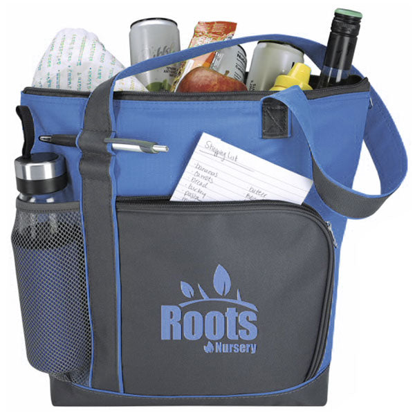 The Atchison Charcoal/Royal Market Cooler Tote with custom logo is definitely what you need when you're out on a company picnic, having lunch after a team-building exercise outdoors or just as part of a new employee welcome package. Print your company logo on it for extra swag!The minimum order for this product is 100 pieces.