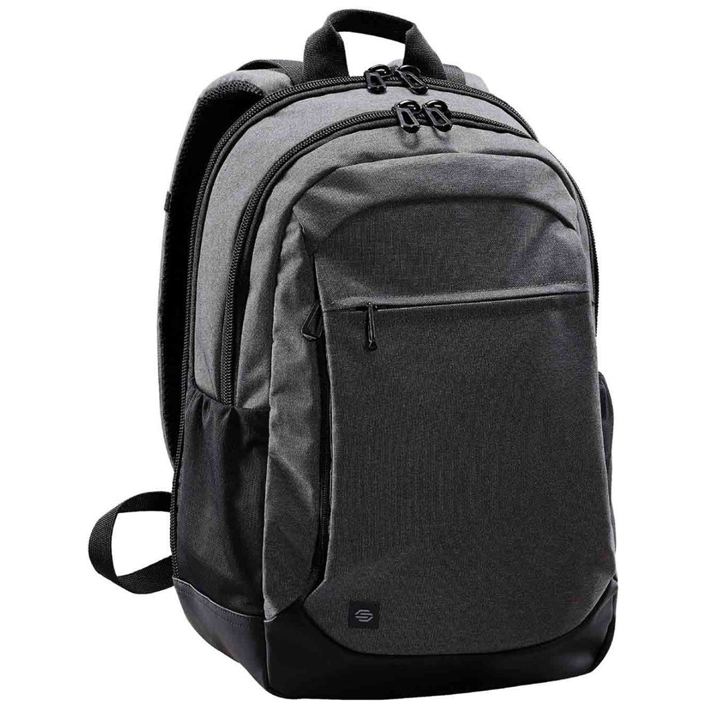 The custom Stormtech Carbon Trinity Access Pack will allow you to stay prepared no matter what the day throws your way. This compact, yet roomy pack can be custom embroidered with your company logo or design to offer as corporate gifts or as prizes for the next company outing. If your employees must travel then make this part of employee apparel to store important documents and materials. The easy access padded laptop compartment has a dedicated laptop sleeve with dual side mesh beverage pockets. A smaller zippered front pocket is perfect for those small everyday items you must have. Choose your favorite color, black or carbon, and order today.Highlights