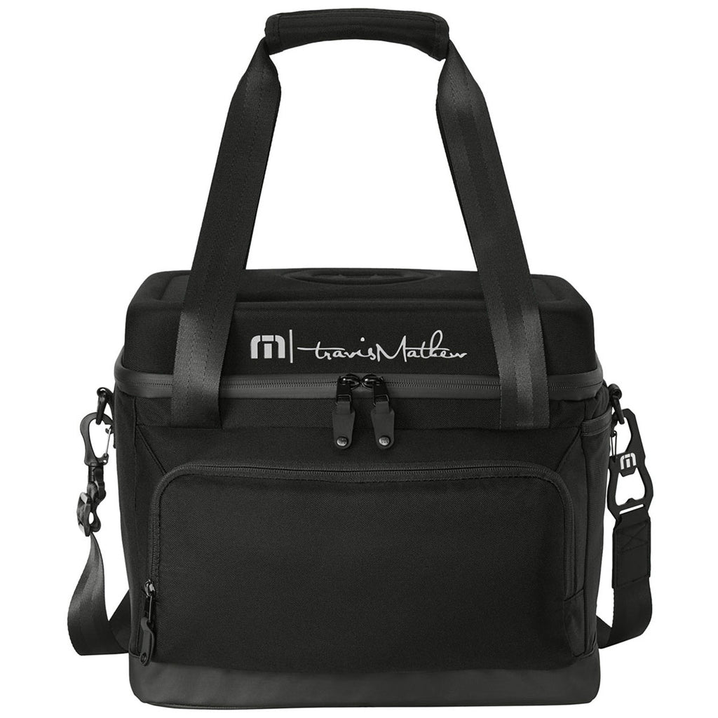 - Molded top panel with interior storage and heat transfer TravisMathew logo