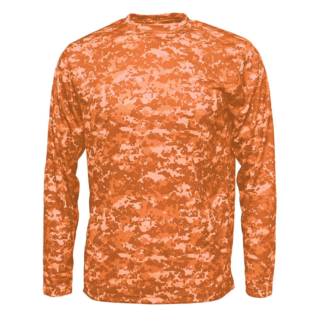 What could be more 'now' than a custom BAW Men's Orange Xtreme Tek Digital Camo Long Sleeve Shirt? And what could be better than a choice of different colors? This polyester shirt will be a favorite of the men who receive it. Every time they show it off they will be showing off your logo as well. It will be worn often because the fabric is so comfortable and has moisture wicking properties so it is very absorbent. The crew neck style has double needle hems which are very popular. Don't be surprised if current and prospective customers come back and ask for a second color 'for a friend'.