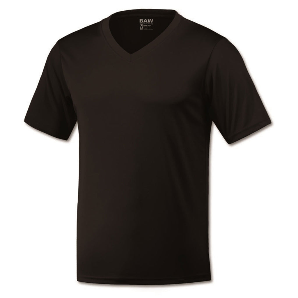 Does a man ever have enough V-neck short sleeved shirts? When you hand out the BAW Men's Black Xtreme Tek V-Neck Short Sleeve Shirt with your custom logo on it, it will be a welcomed gift. It is ideal to give to contest winners, gift with purchase, or to give to a new prospective customer. Whenever he wears it, he will definitely think about your company. It is made of polyester Xtreme-Tek and the fabric has moisture wicking properties. This makes the shirt feel great against the skin and keeps the wearer cool and dry. This shirt also offers UV protection and has an anti-bacterial treatment.Highlights