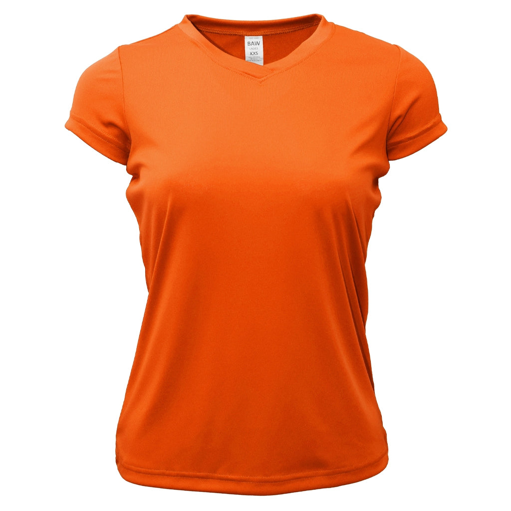 No one could accuse you of not selecting the right color of women's T-shirt for your company sponsored promotion! The BAW Women's Orange Xtreme Tek T-Shirt comes in a variety different shades. Just imagine your custom logo on the front of each one. Your promotion could be the gold at the end of the proverbial rainbow. This ladies' tee is available in sizes 2XS to 3X, and the material is so comfortable and breathable that recipients will wear it every chance they get. This is a tee that will not shrink and also offers UV protection. Whether you're having an anniversary celebration or gift with purchase, you just can't go wrong!Corresponding Men's Style: BAW Men's Orange Xtreme Tek T-Shirt