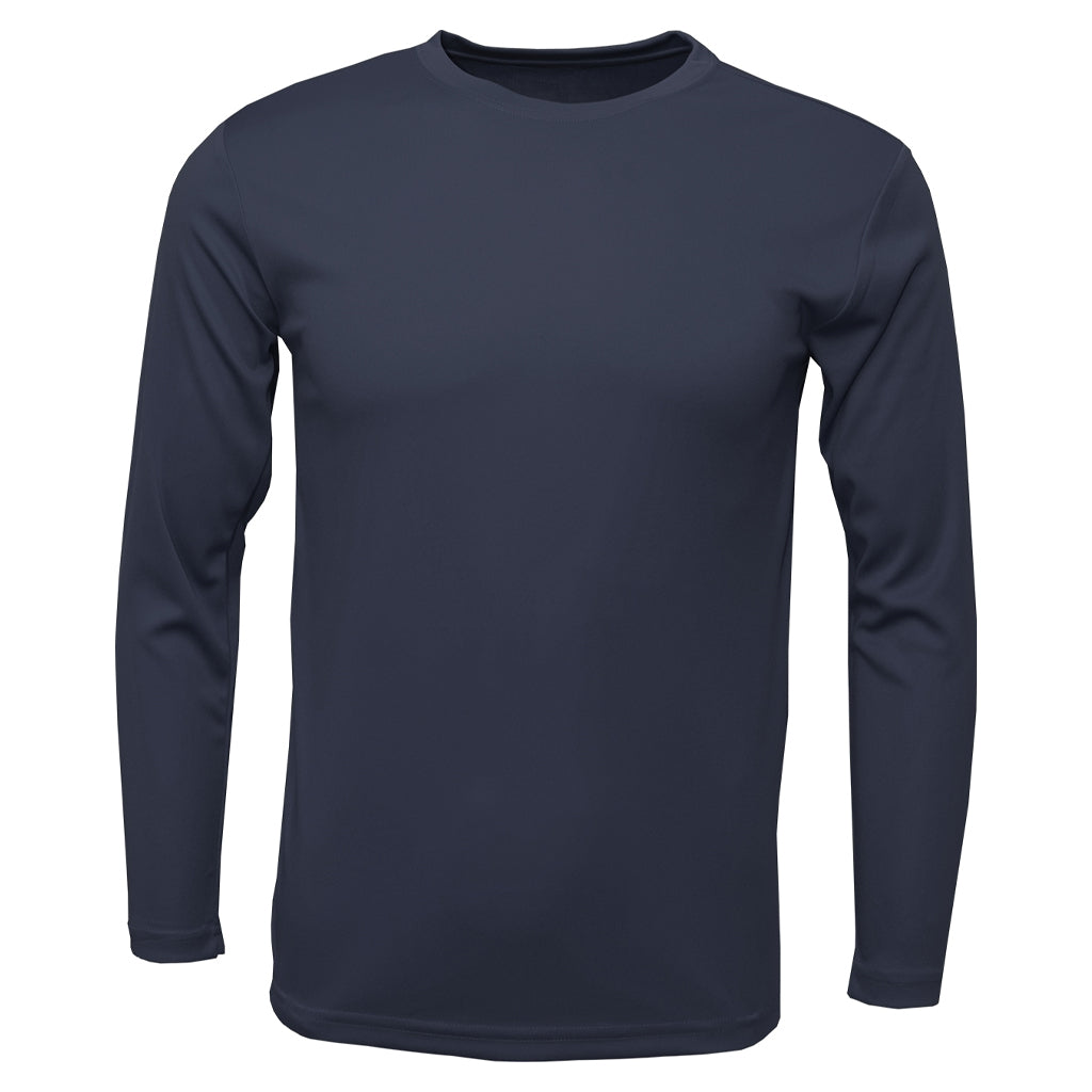 Not only will the BAW Men's Navy Xtreme Tek Long Sleeve Shirt fit into your promotional plans, it will fit the men to a "T" . Your custom logo will stand out on any one of the available colors from brown to bright green. It has a crew neck and double needle hems. The breathable polyester fits like a glove without sagging and bagging. It is ideal for corporate sponsorships, company events and give-away incentives. This is a handsome shirt that will be enhanced with your custom logo. Those who see someone wearing it will be sure to ask where it was received, and the wearer only has to point to his chest.Corresponding Women's Style: BAW Women's Navy Xtreme Tek Long Sleeve Shirt