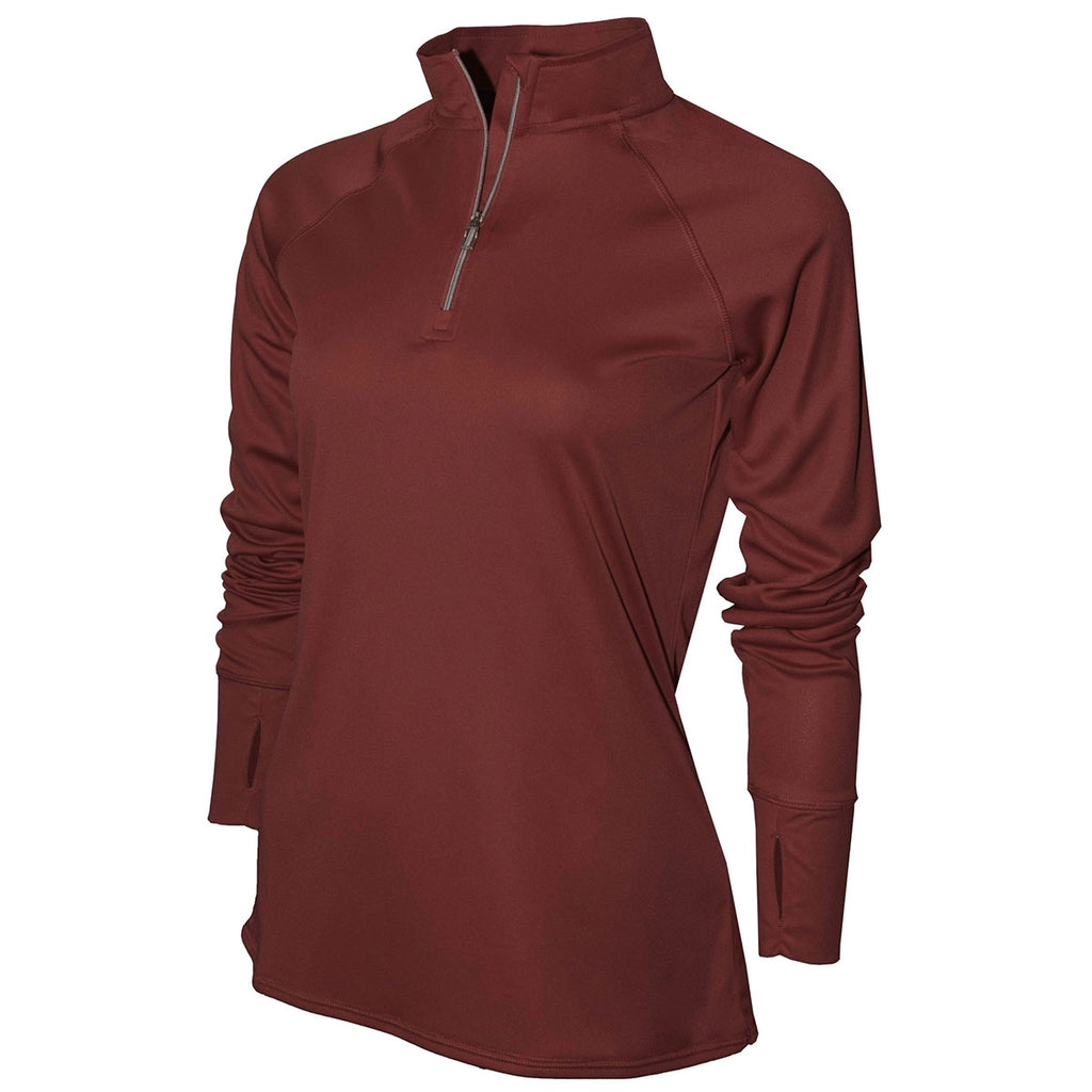 When women work out in the BAW Women's Cardinal Xtreme Tek Quarter Zip they want to feel good as well as look fashionable. You will be ranked among their favorite people when you give out these women's runners. Not only will the women look chic, but your logo will tell everyone you know what style and class are all about. Those seeing your custom shirt and logo will know you are a company with great taste. If your choice of giveaways is any indication, your products or services rank tops as well. This polyester runner is available in many fashionable colors and all have a silver zipper and thumb hole.Highlights